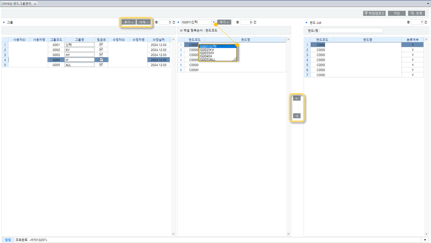 위치 : 펀드종합 > 자료관리 > [70102] 펀드그룹관리