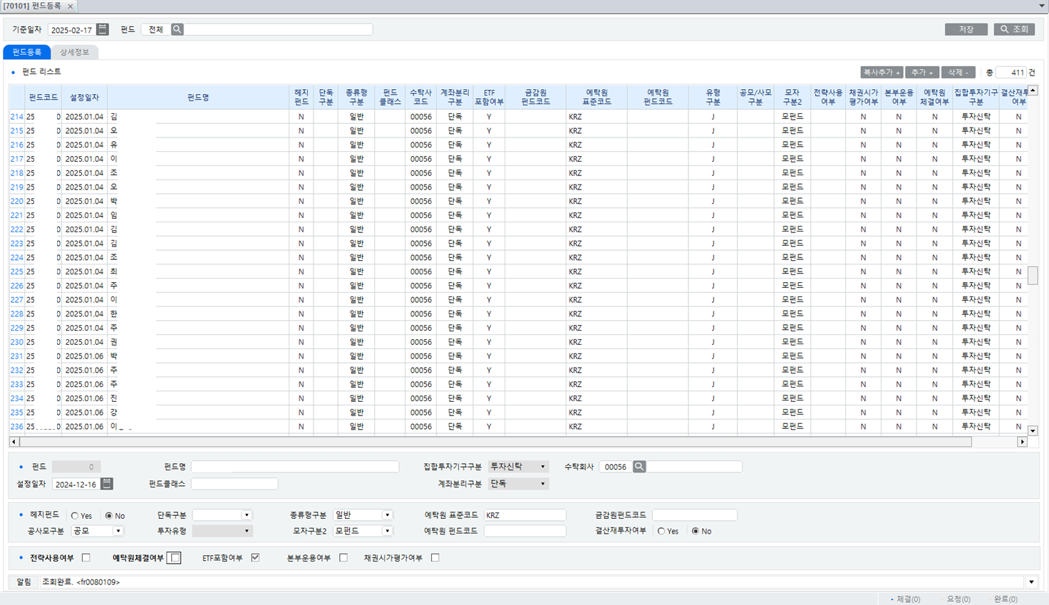 경로 : 펀드종합 > 자료관리 > [70101] 펀드등록 (《펀드등록》,《상세정보 》)