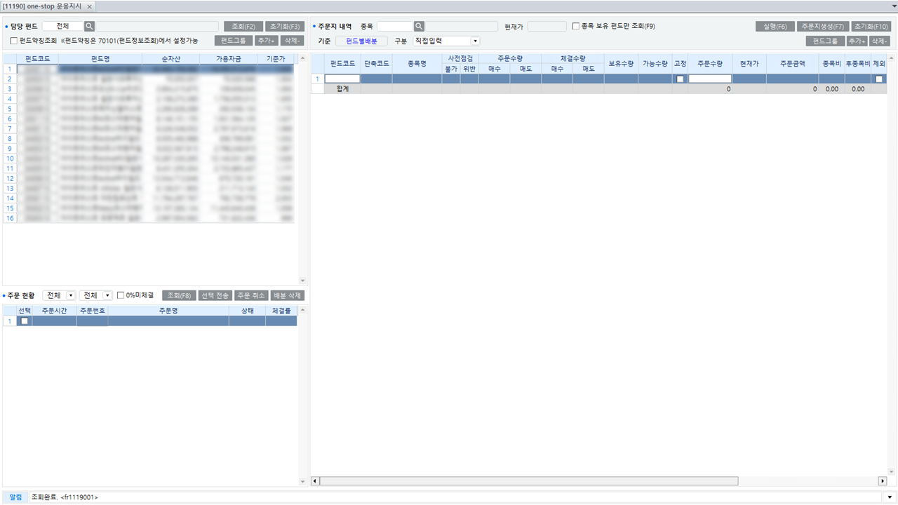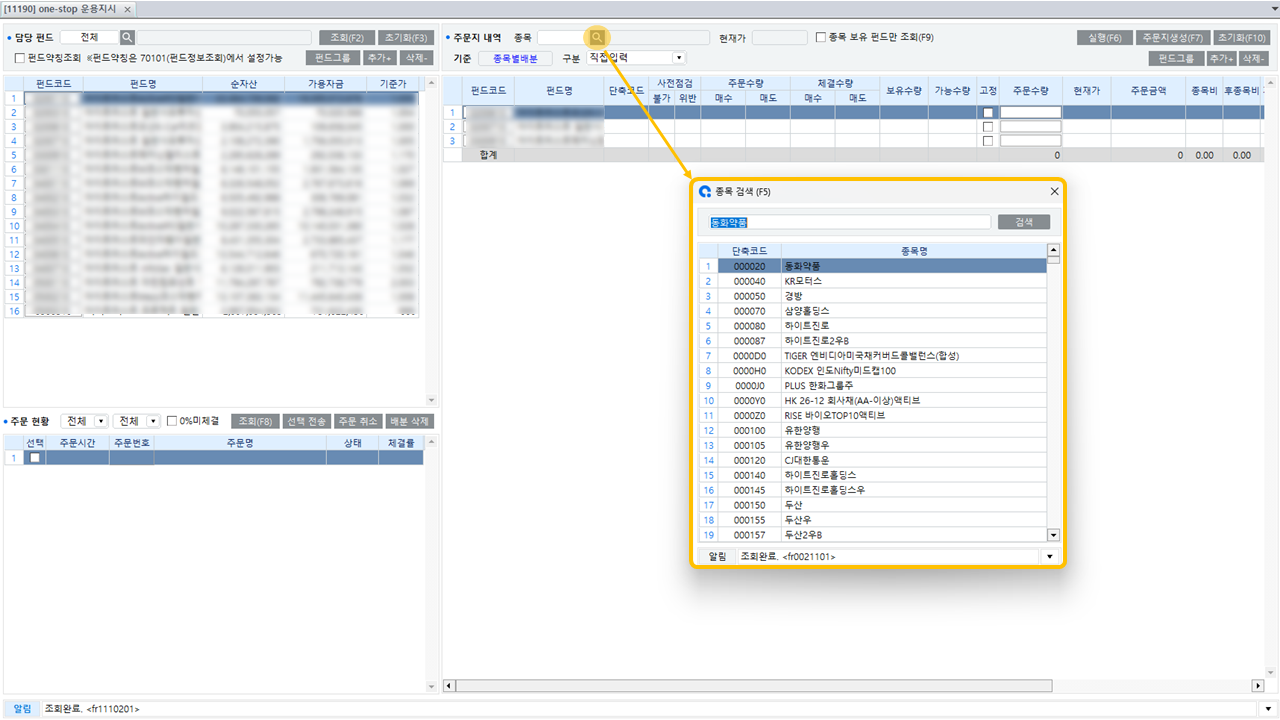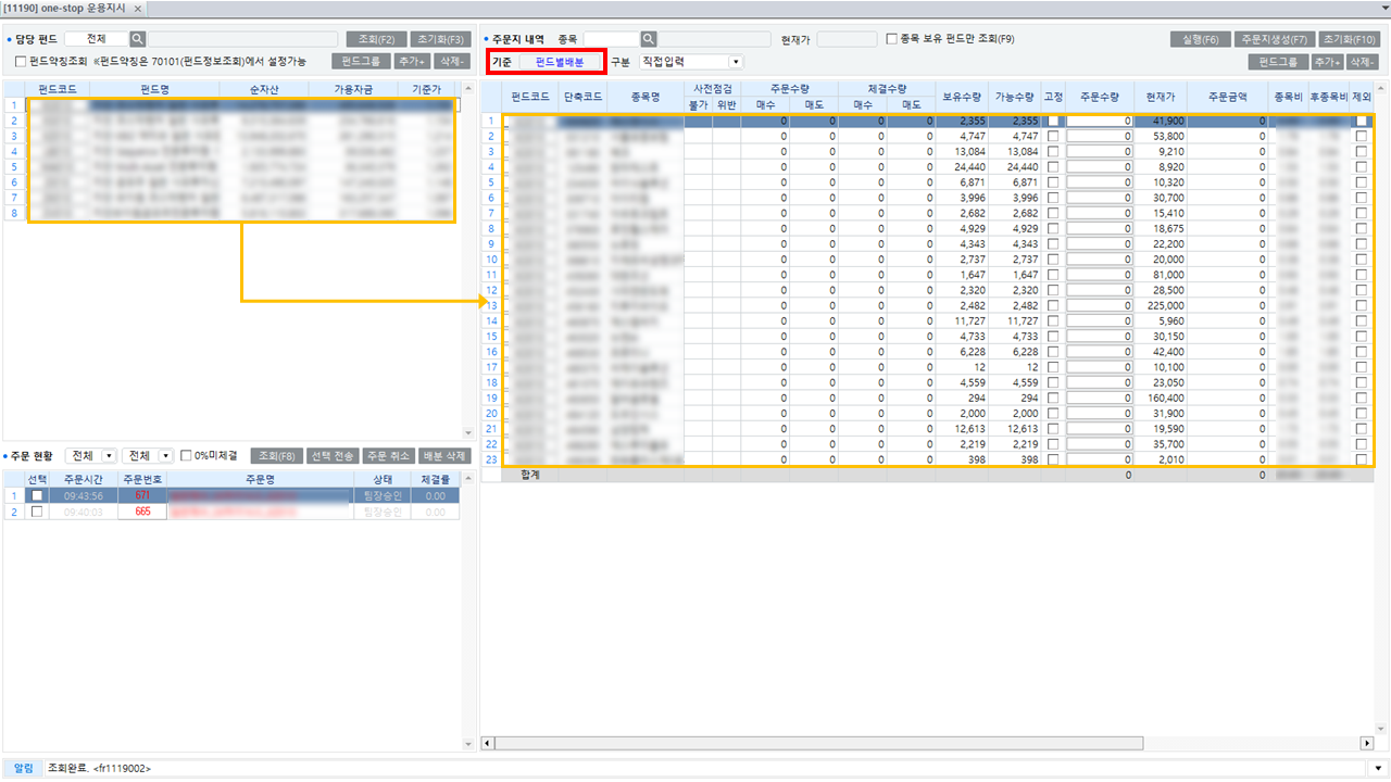 왼쪽 담당 펀드 목록에서 주문 대상 펀드를 더블 클릭 합니다.