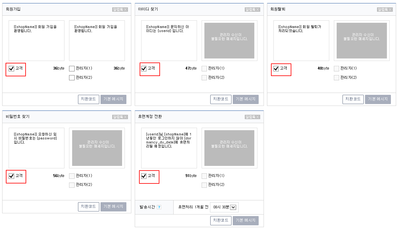 '회원 > 메세지 발송 > SMS 발송 관리 > SMS 자동발송' 에서 고객에게 발송되도록 체크 확인