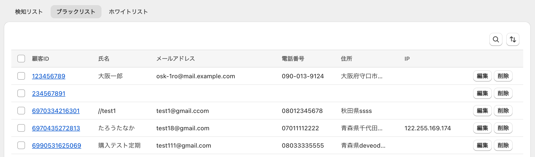 ブラックリストに登録すると、以降リストのいずれかの項目が一致した場合に検知されます。各項目の手動変更やブラックリストからの削除も可能です。