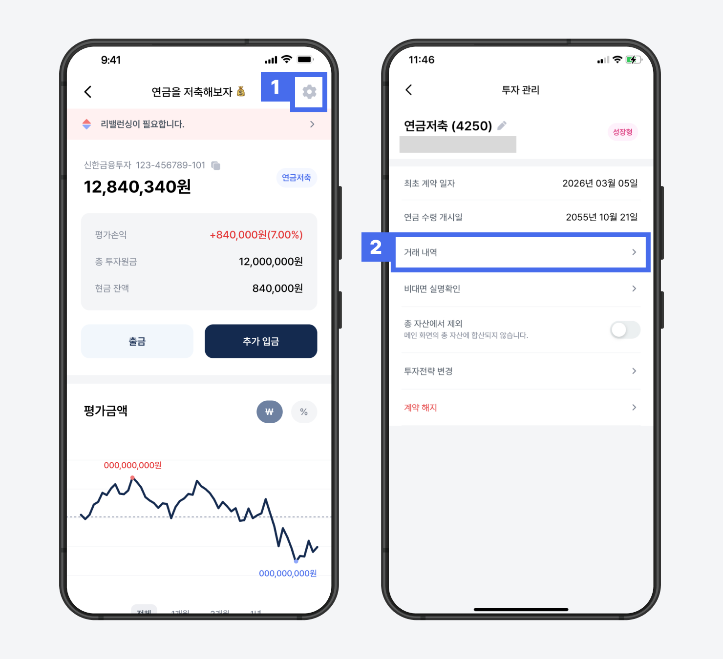 프리즘 앱 > ‘투자’ 탭 > 계좌 선택 > 오른쪽 상단 톱니바퀴 클릭