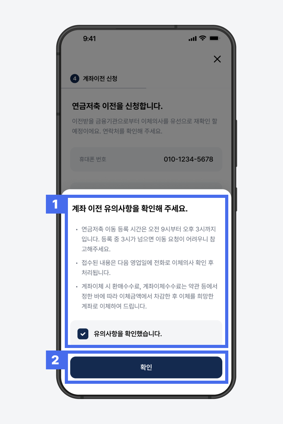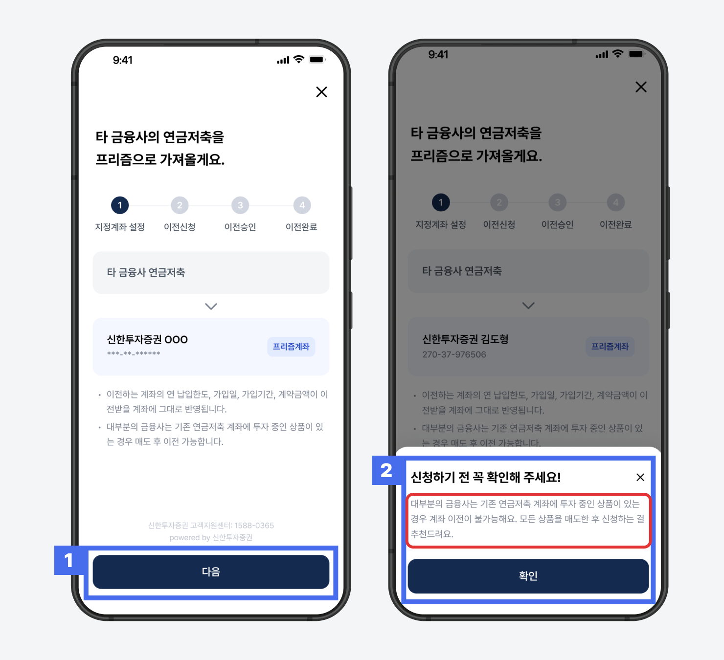 1) 계좌 이전 유의사항 확인