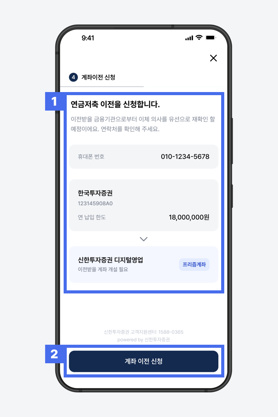 1) 이전할 연금저축 계좌정보 최종 확인