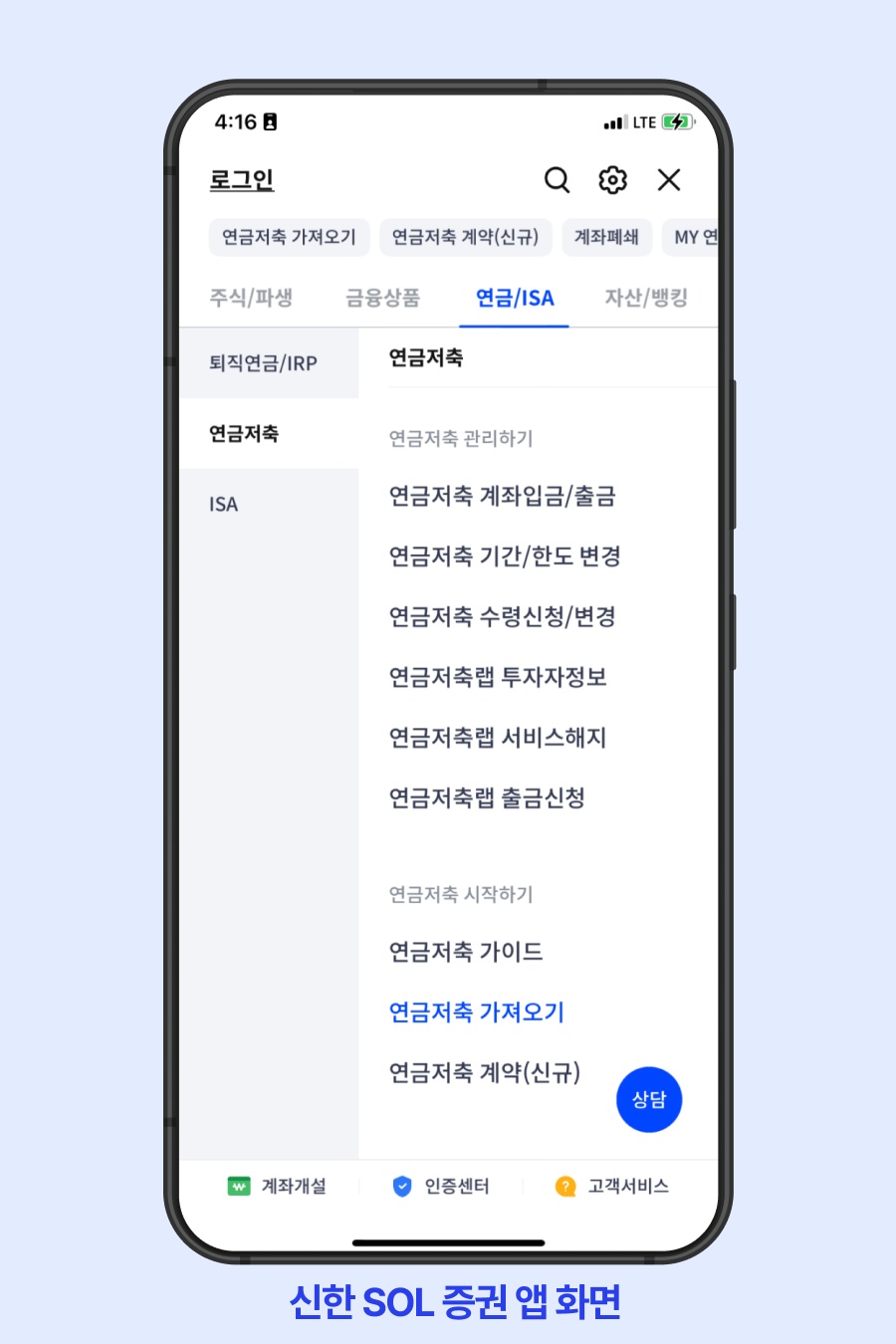 [연금저축 지정계좌 확인 경로]