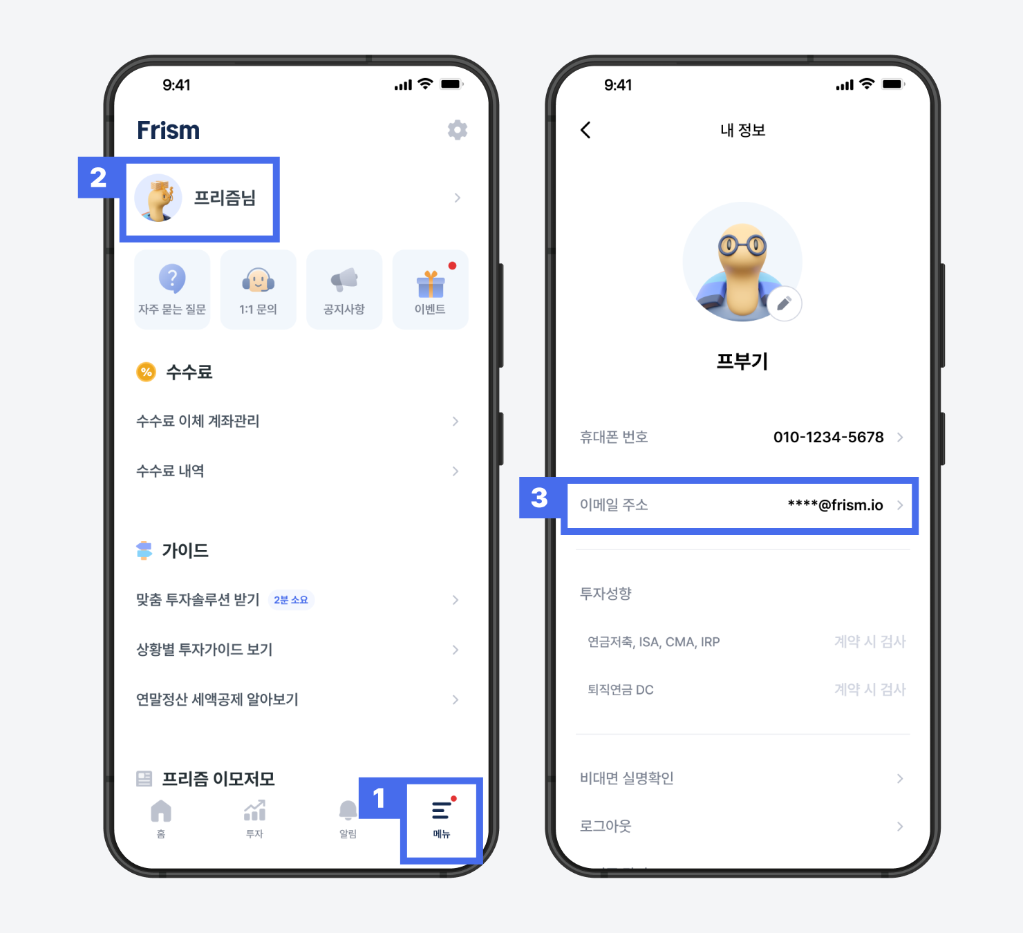 1) 프리즘 앱 하단의 ‘메뉴’ 탭을 클릭합니다.
