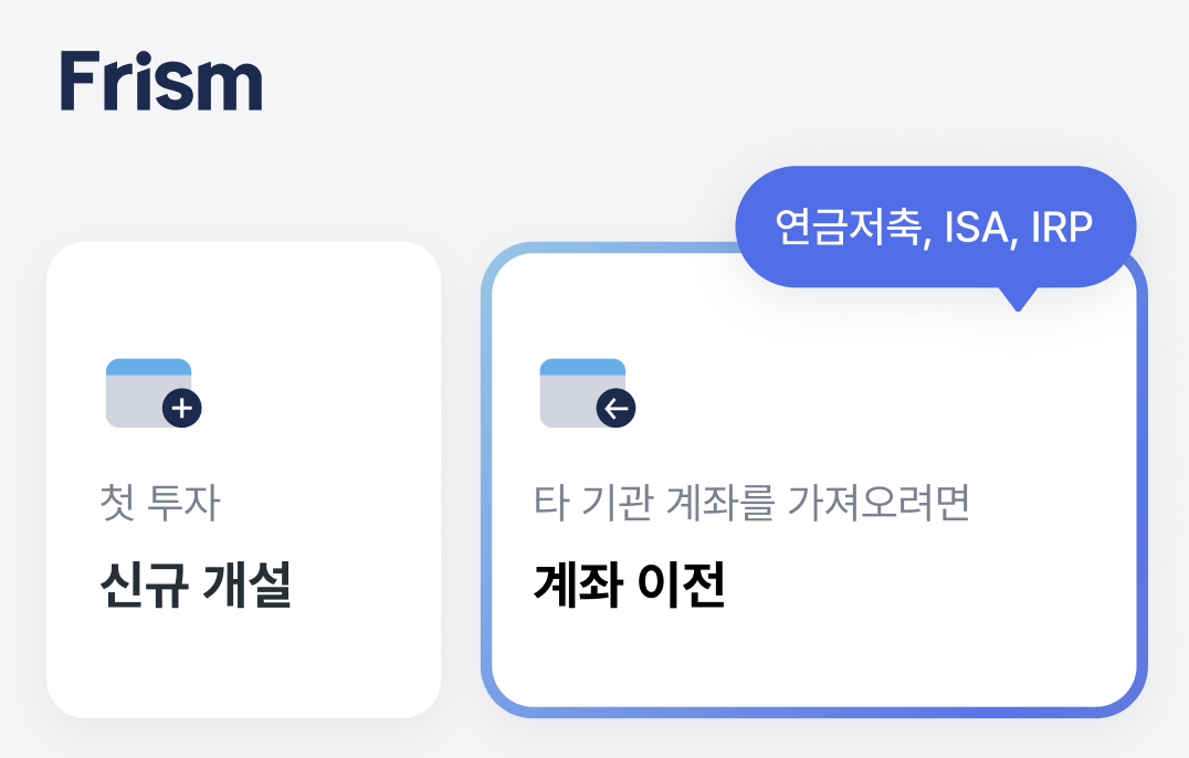→ 프리즘 앱을 통해 일반 계좌 이전 진행