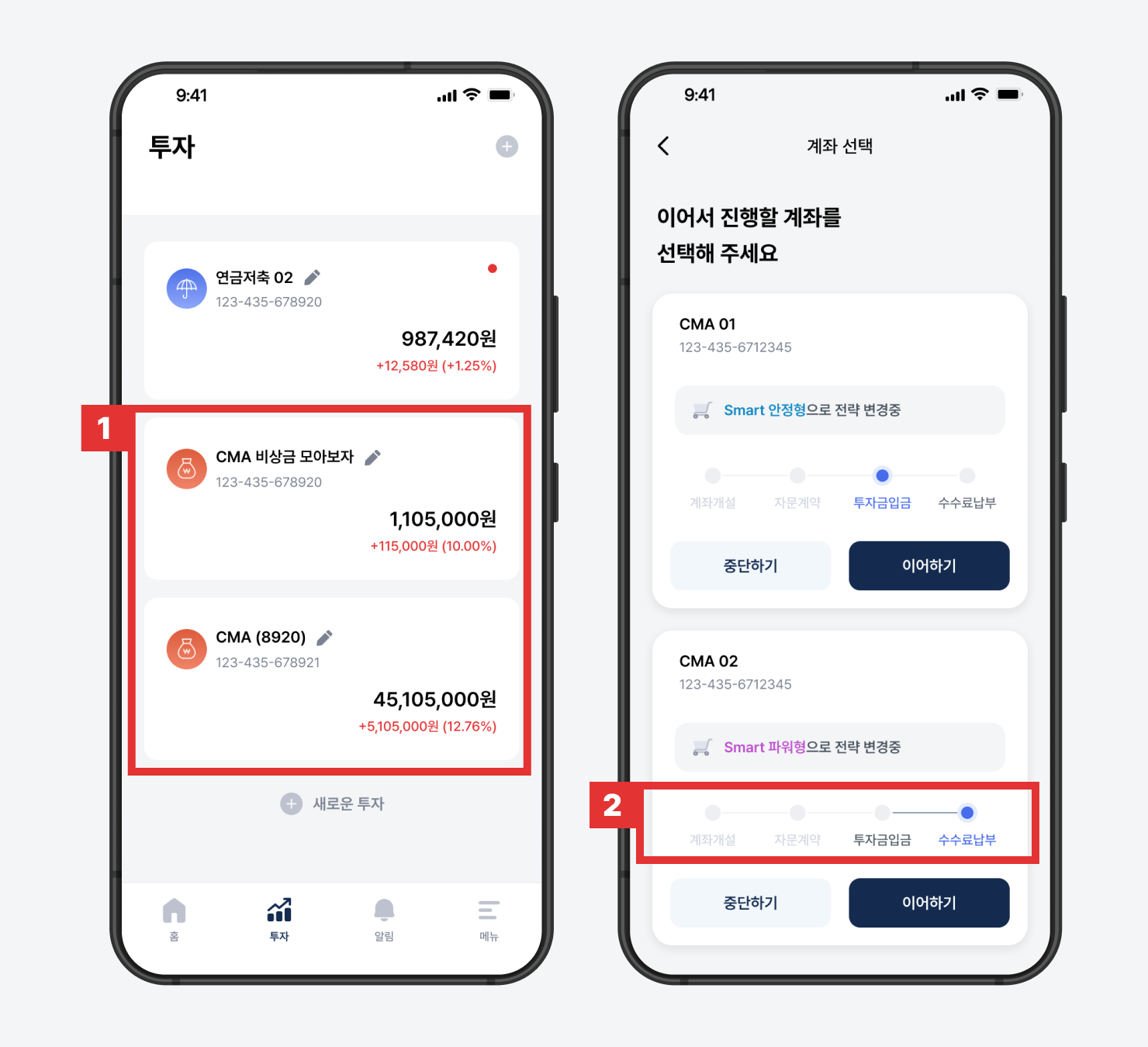 1) CMA 계좌는 2개까지 개설이 가능하며, 각 계좌마다 서로 다른 자산배분 전략을 선택할 수 있습니다.