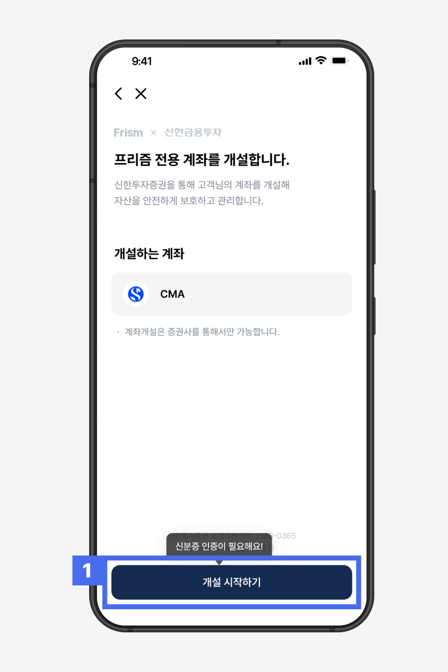 프리즘 팀의 리셋 완료 안내를 받으면, CMA 개설 절차를 다시 시작합니다.