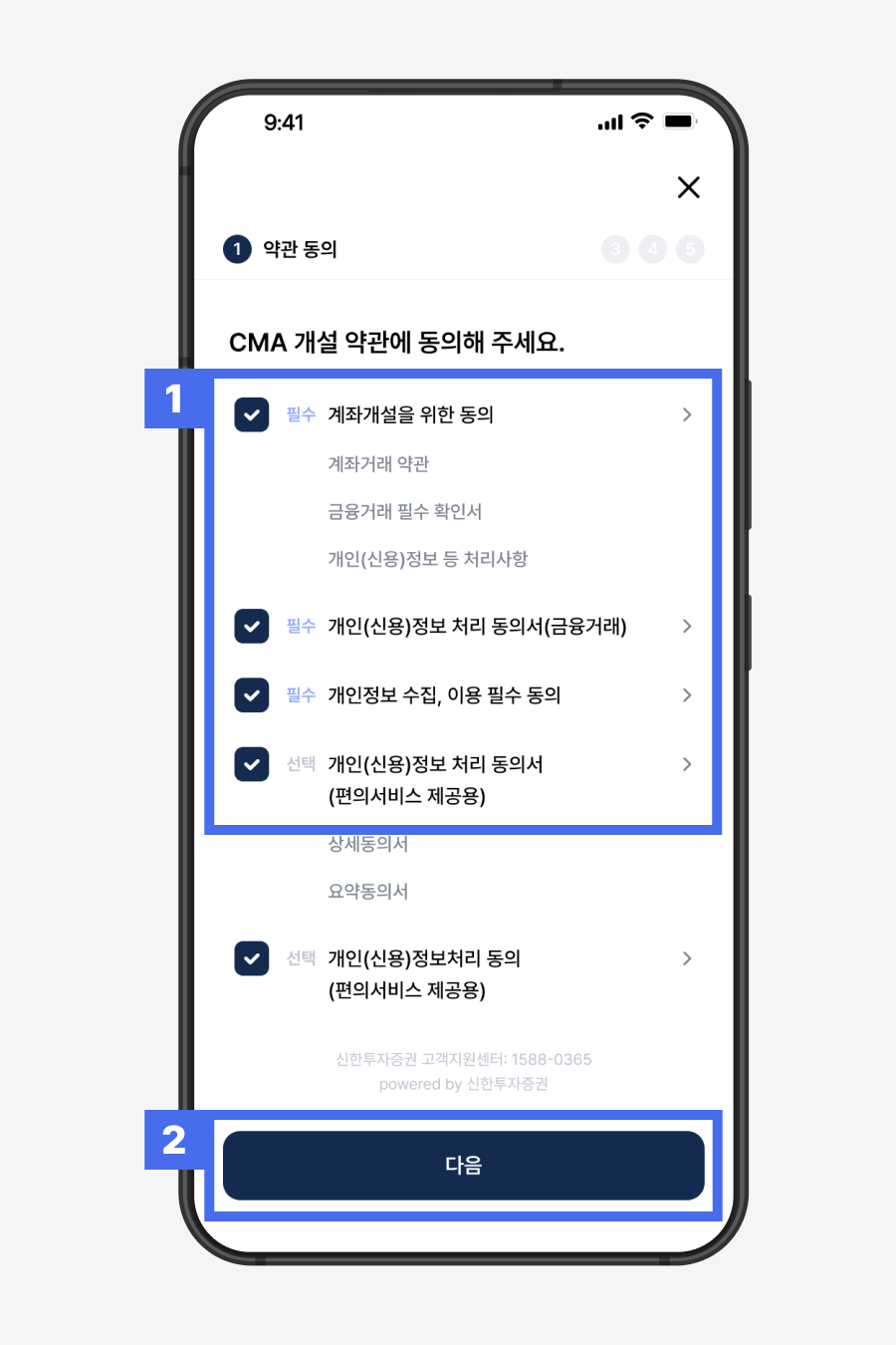 1) 계좌 개설 약관 동의
