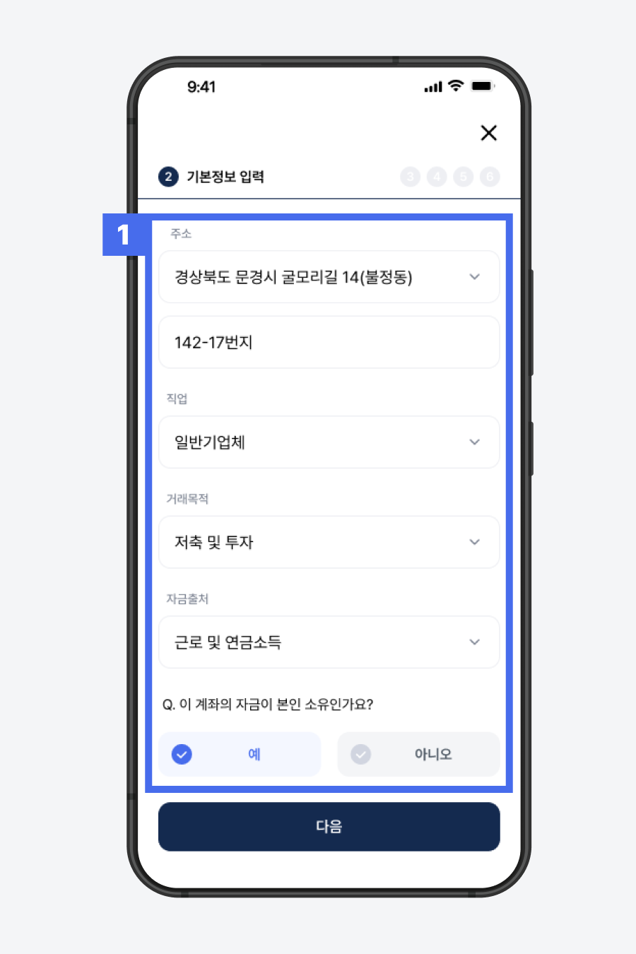 1) 금융거래 목적을 선택해주세요.