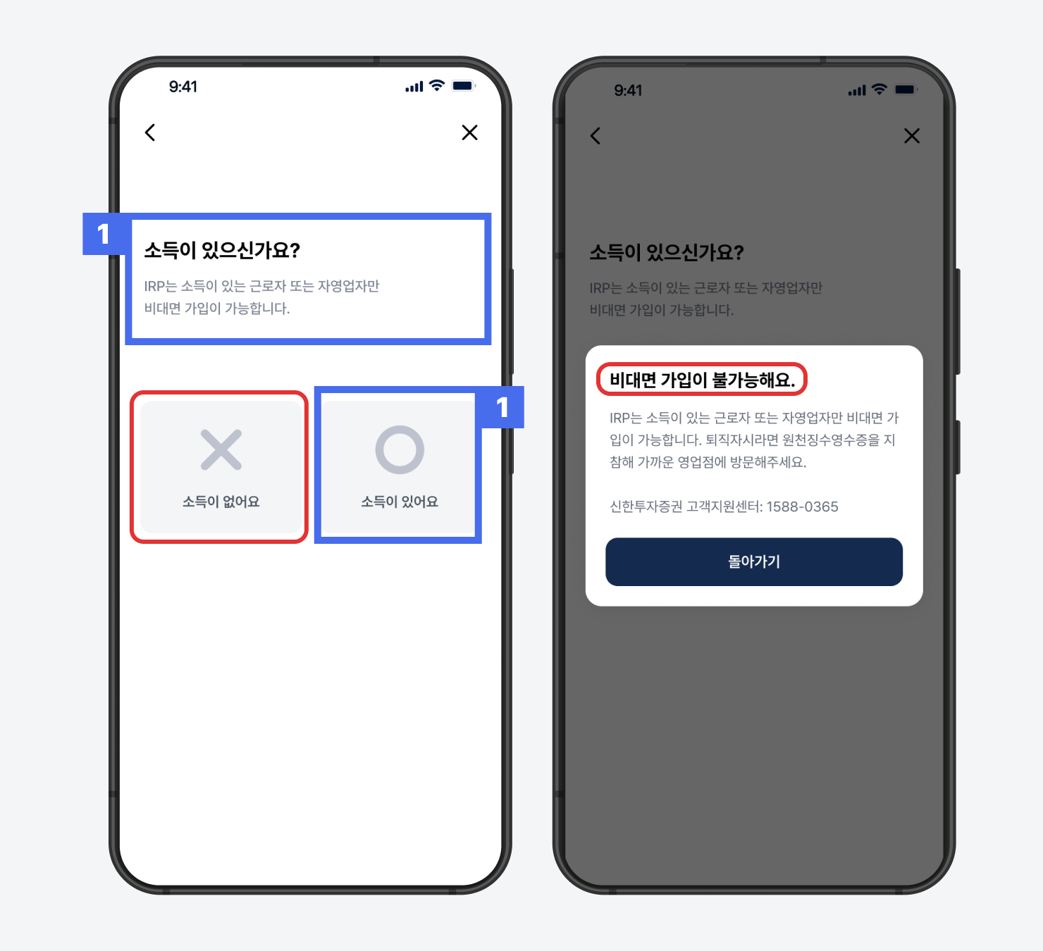 현재 소득이 없는 경우, 비대면으로 개설되는 프리즘 제휴 IRP 계좌 개설 및 이전이 불가합니다.