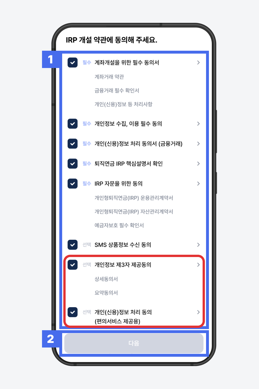 2) ‘다음'을 눌러 다음 단계를 진행해주세요.
