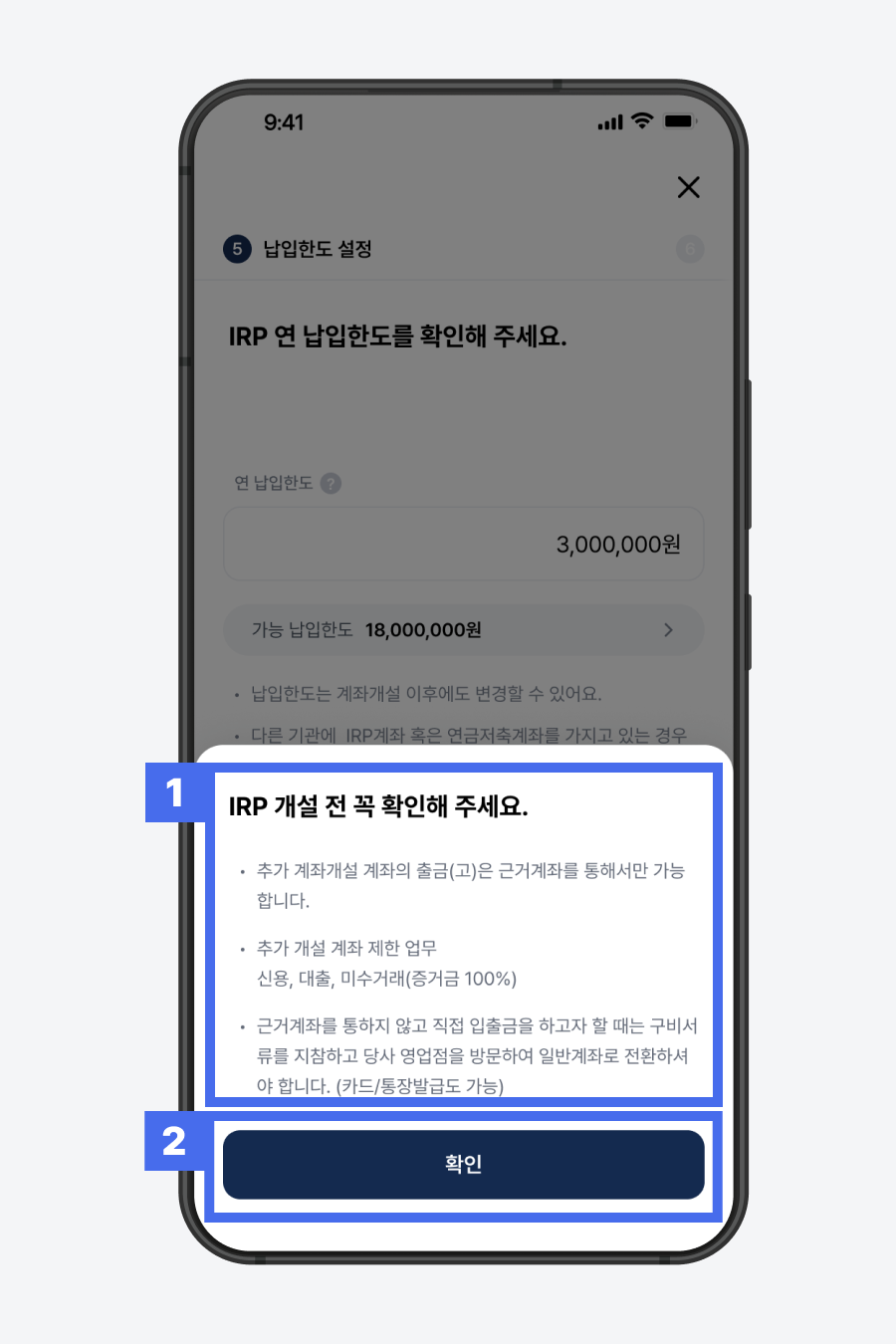 1) 가능 납입한도 확인 후, ‘연 납입한도' 입력