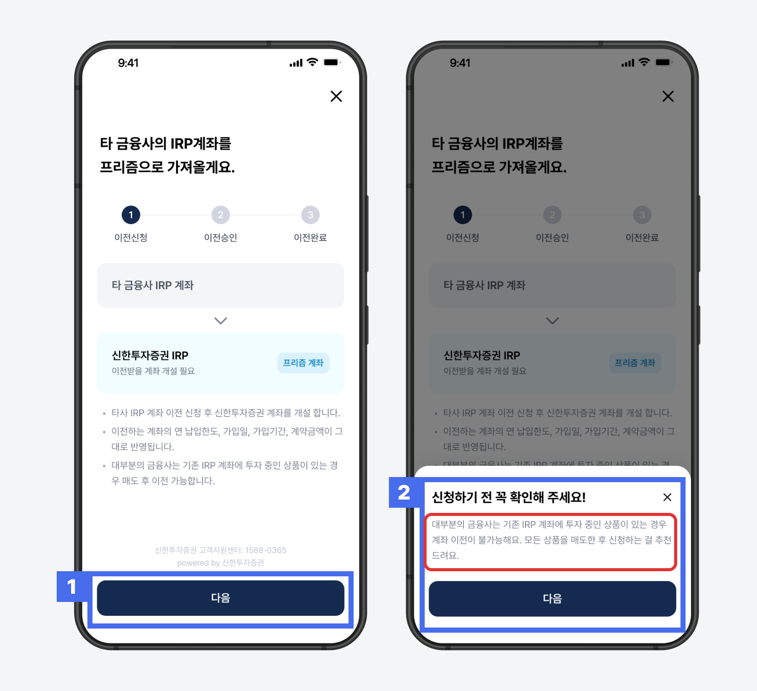 ※ 신한투자증권 디지털업무 집중화팀(연금저축, IRP) 1588-1122