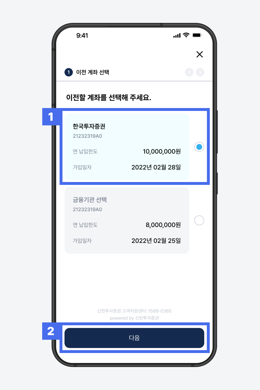 2) ‘계좌 이전 신청' 클릭