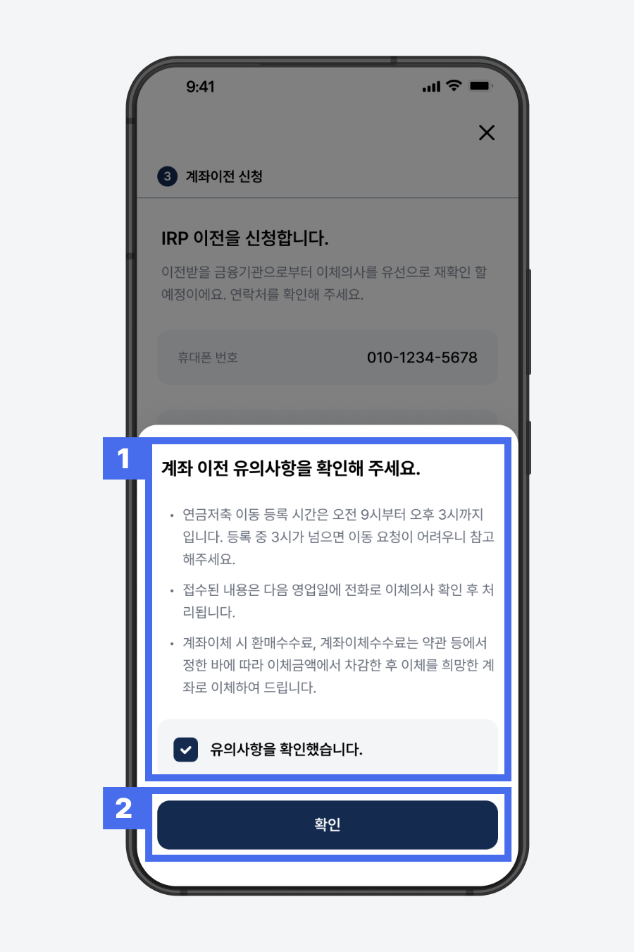 1) 계좌 이전 유의사항 확인