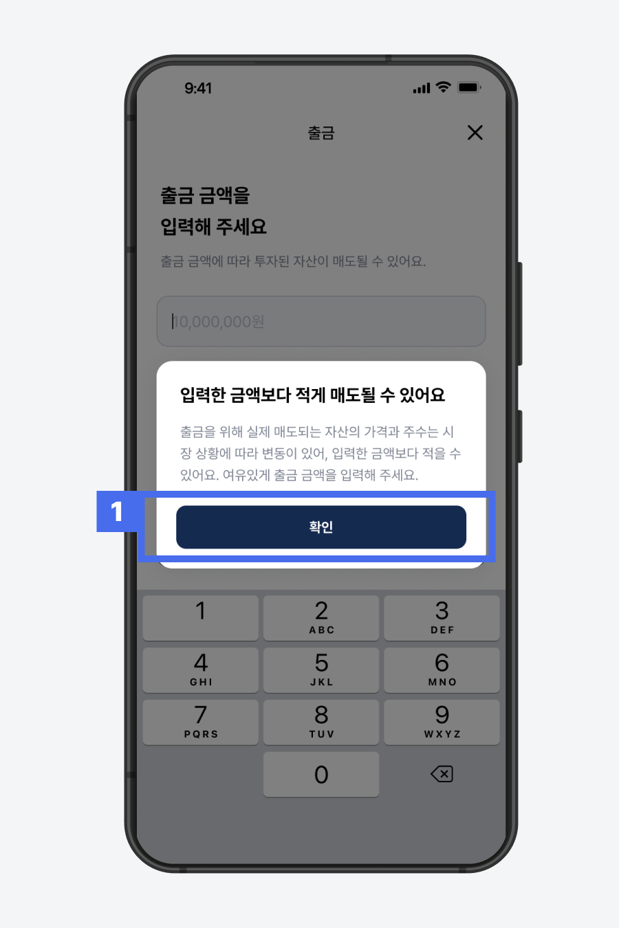 1) 출금할 금액 입력