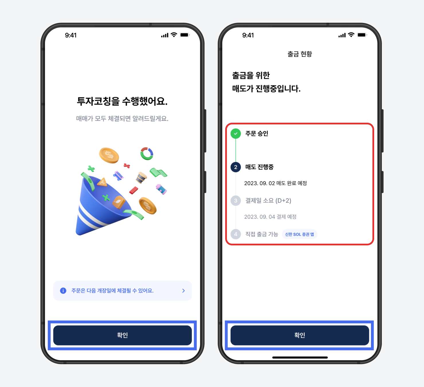출금 신청을 취소하려면 ‘출금 신청 취소' 버튼을 꼭 눌러야 하며, 그렇지 않으면 매도 코칭이 진행됩니다.