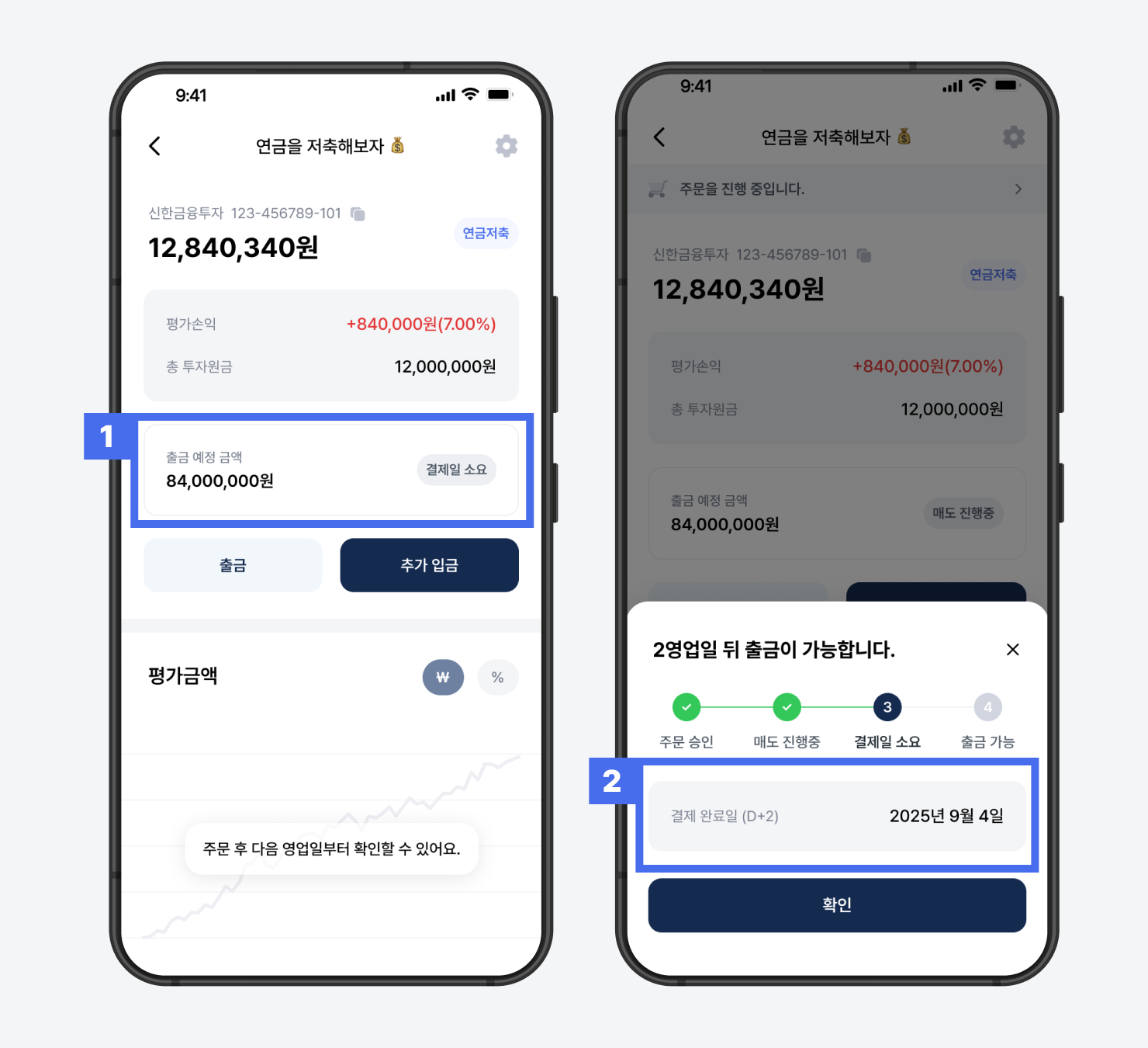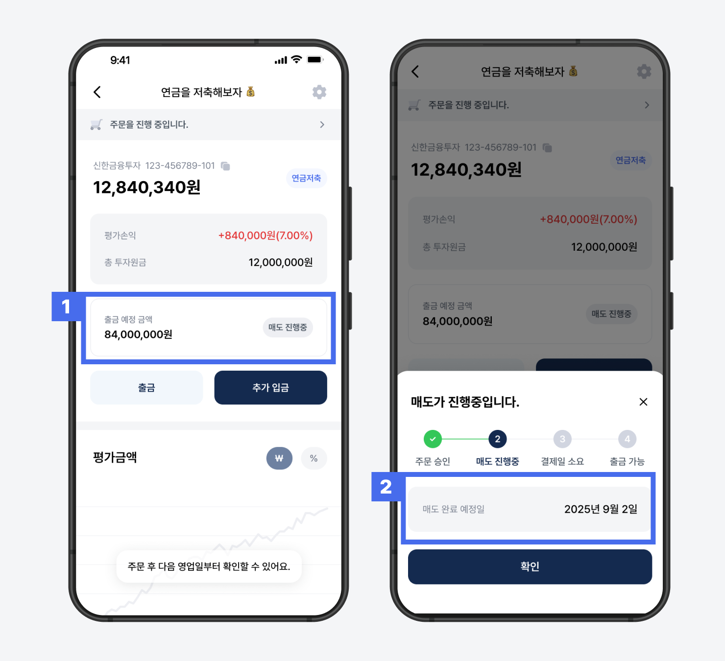 2) 매도 완료 예정일을 확인합니다.
