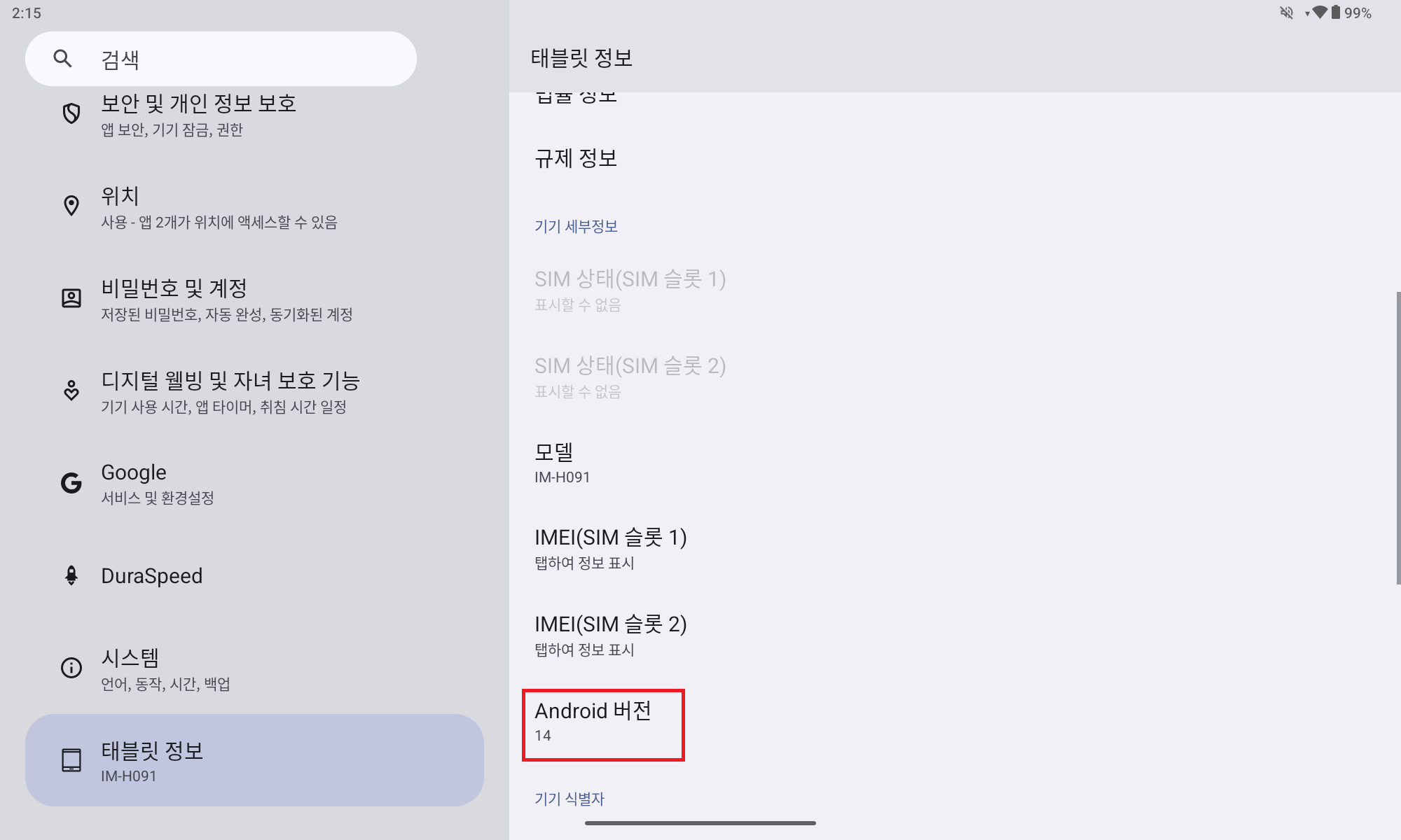 이용하고 계시는 제품의 안드로이드 버전은 '설정' → '태블릿 정보'를 통하여 확인 가능합니다.