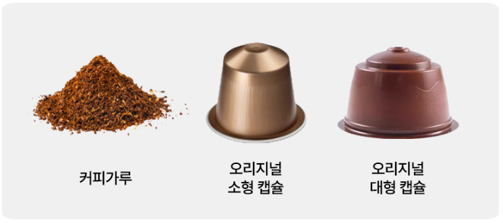A. 커피 캡슐과 분쇄 원두(커피 가루) 전부 사용 가능합니다. 커피 캡슐은 네스프레소 오리지날 호환 캡슐을 사용할 수 있으며, 네스프레소 버츄오 캡슐 및 스테인리스 재사용 캡슐과는 호환되지 않습니다. 구매 전 반드시 호환 캡슐을 확인해 주세요.