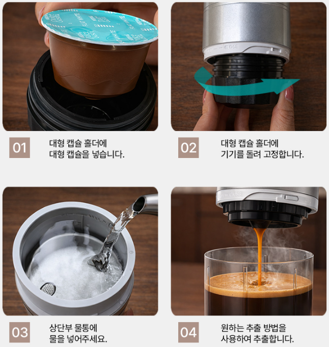 커피머신 전용 캡슐은 구조·규격 차이로 사용이 불가하거나 정상 추출되지 않을 수 있습니다.구매 전 캡슐 호환 여부를 확인해 주시기 바라며, 캡슐 호환 문제로 인한 교환·반품은 제한될 수 있는 점 양해 바랍니다.