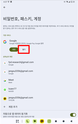 위 설정이 완료되셨다면, 상단에 기재된 "기존 사용하시던 구글 계정일 경우"을 참고하여 1번 항목부터 순차적으로 진행해 주시면 됩니다.