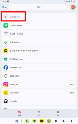 상단 “비밀번호 추가” 버튼을 선택해 주세요.
