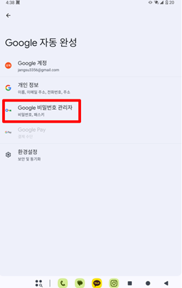 Google 자동 완성 메뉴에서 “Google 비밀번호 관리자” 버튼을 선택해 주세요.