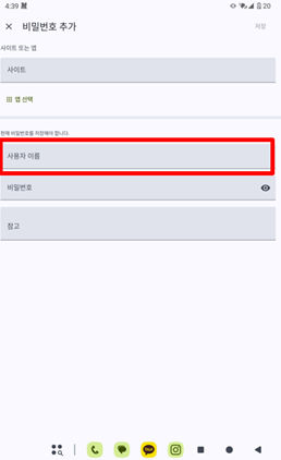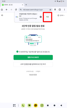 크롬(Crome)에 접속하시어, 로그인이 가능한 사이트에 접속 및 로그인 후 상단 "저장" 버튼을 선택합니다.