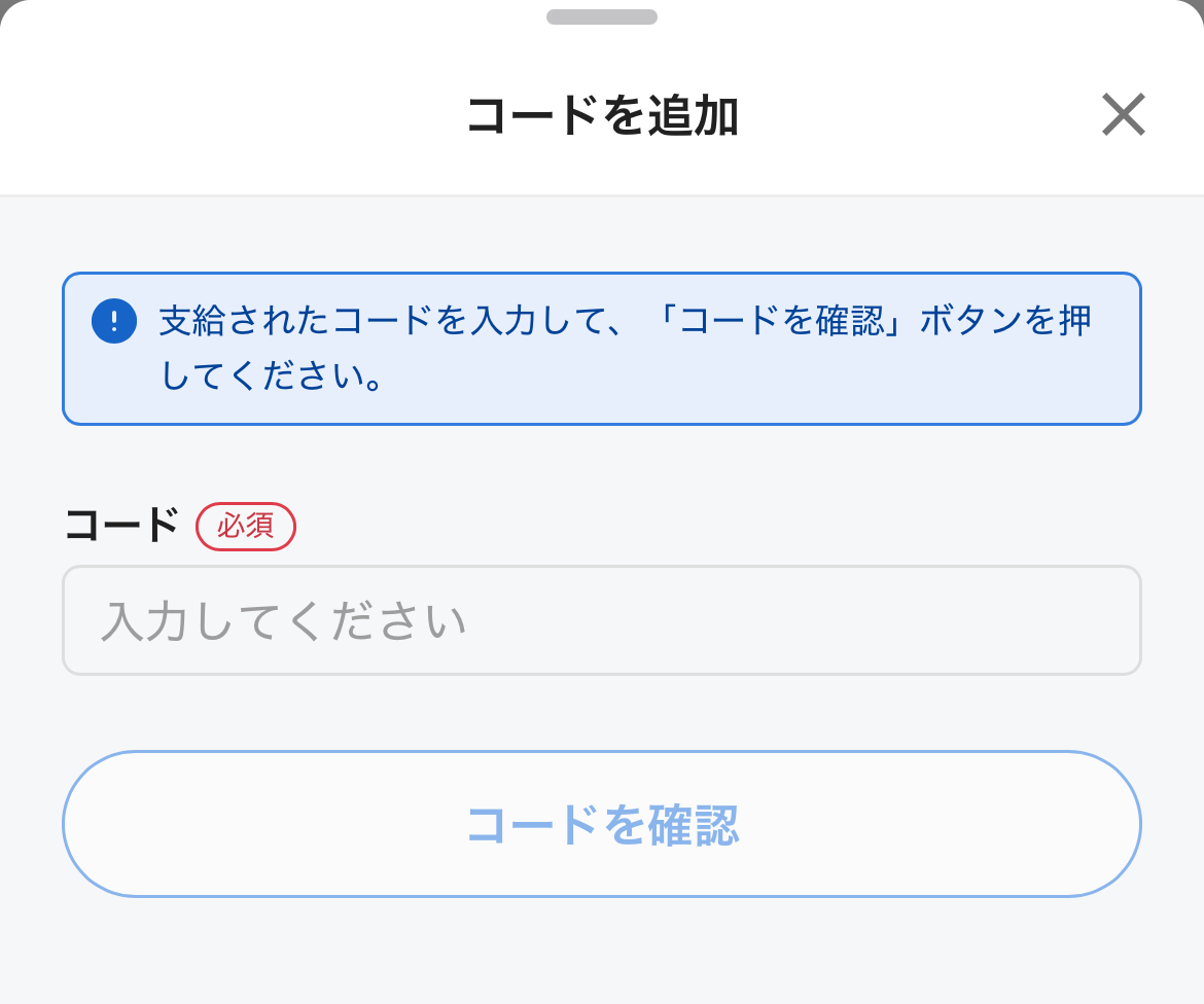 4.コードを追加ボタンをタップし登録