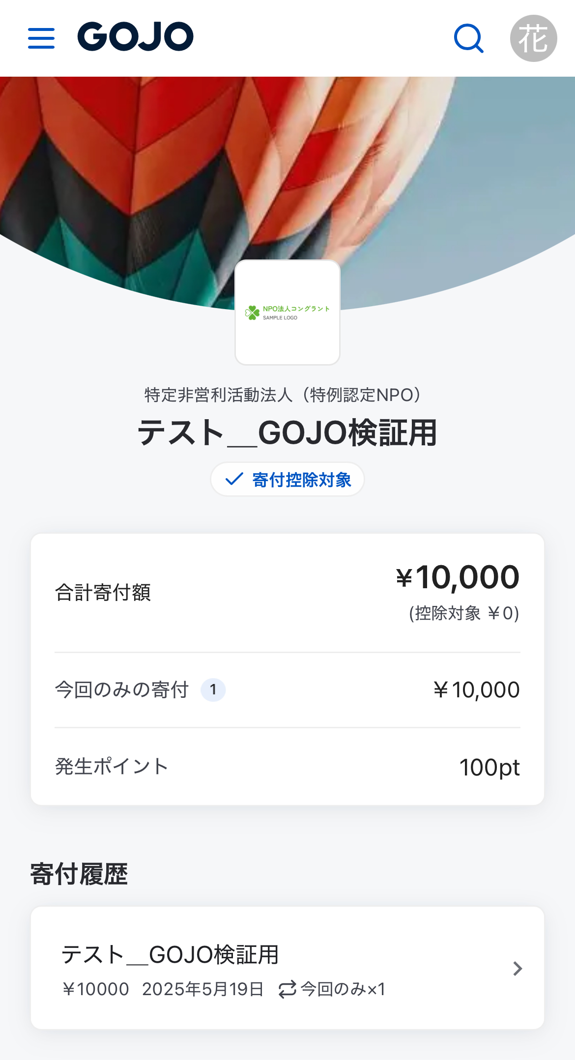 「寄付先管理」は、GOJOアプリで支援した団体を管理するための機能です。