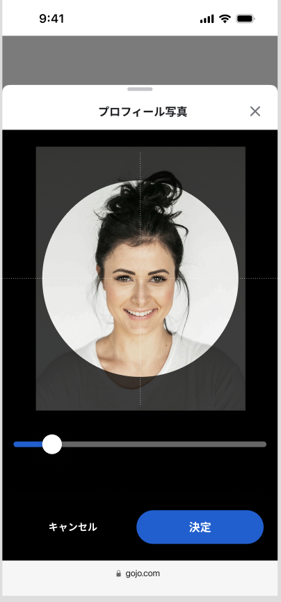 4.バーを左右に移動してアップロードしたプロフィール写真の大きさを調整し、