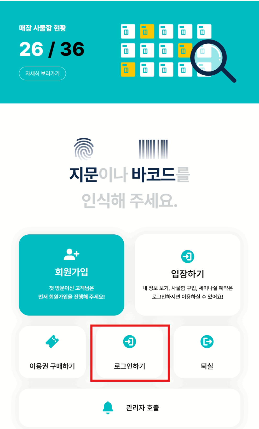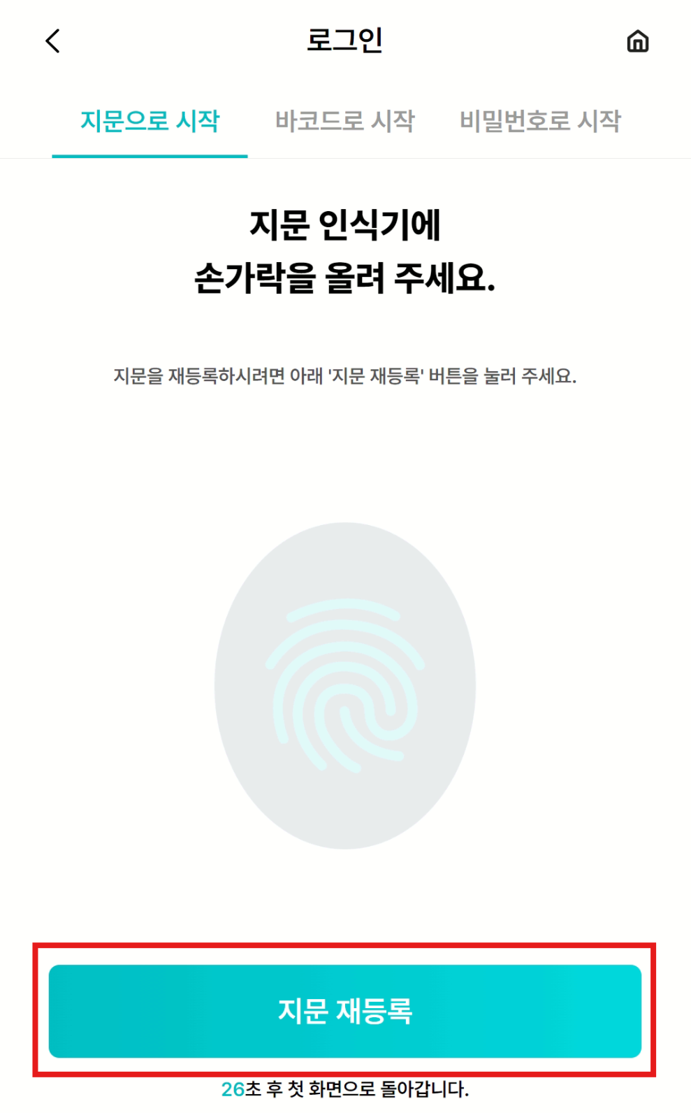 키오스크 - 로그인하게 > 지문 로그인 > 지문 재등록