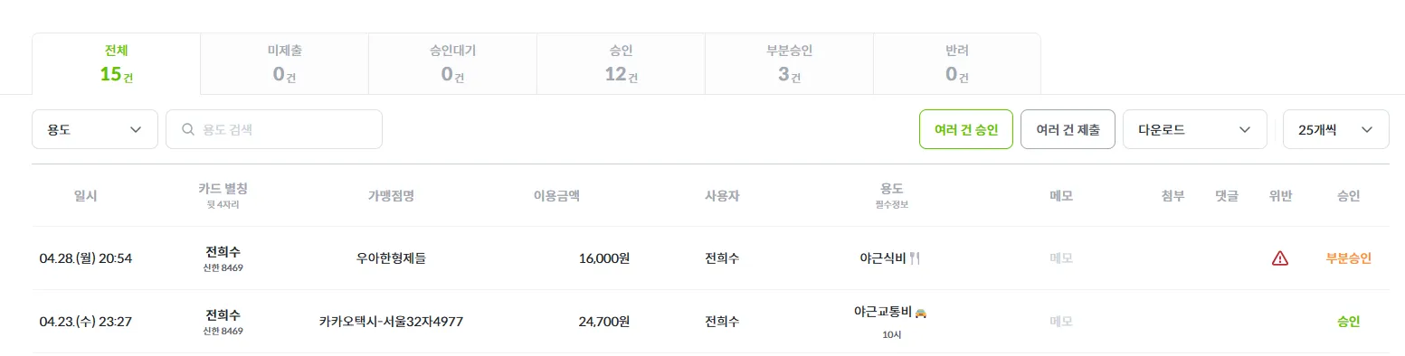 이용내역 건별로 상세 페이지 내에서 불공제 여부 수동 선택이 가능해집니다.