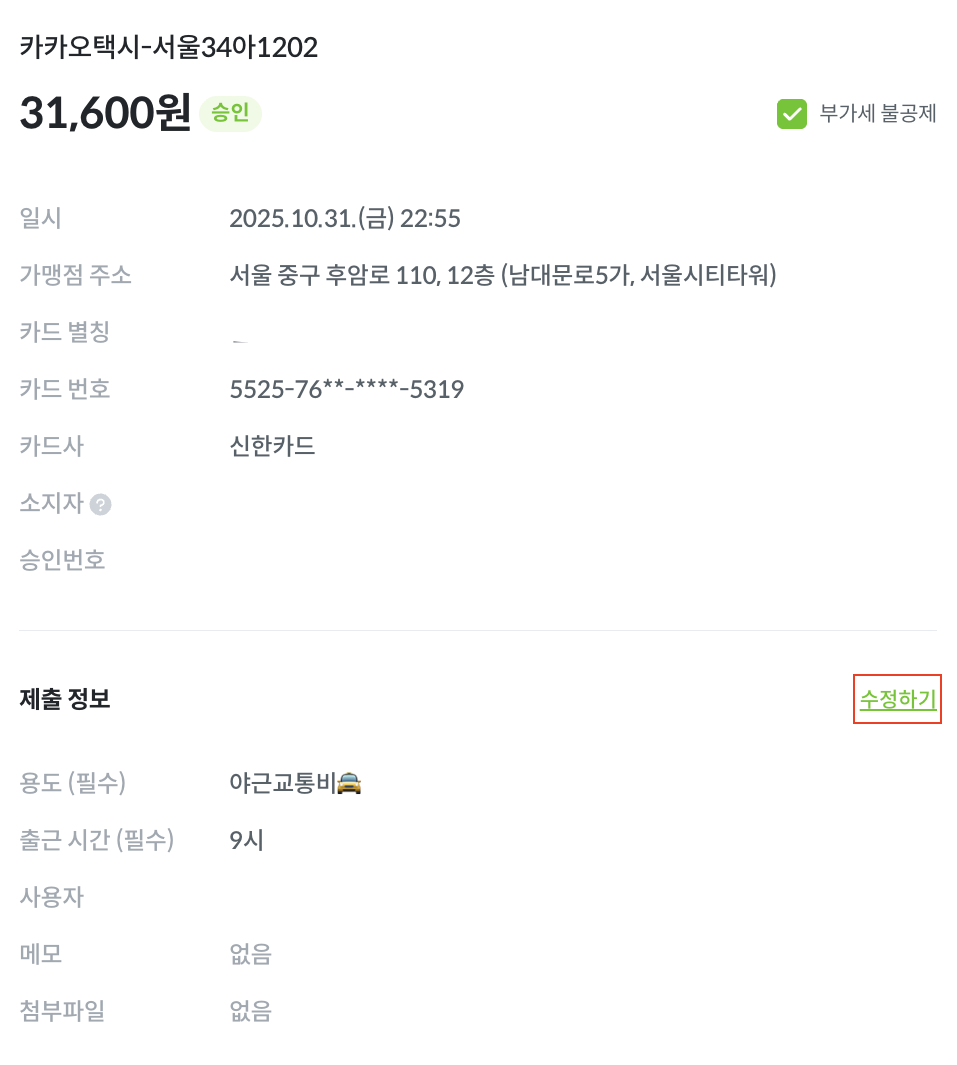 미승인 결제건만 수정 가능합니다.