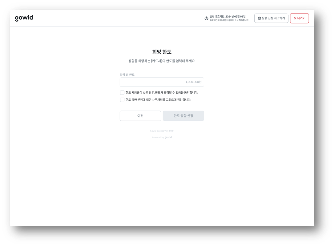 2) 상향을 희망하는 한도를 직접 입력해야 하는 경우, 입력 후 Step 8 → 9 순서로 이동해주세요.