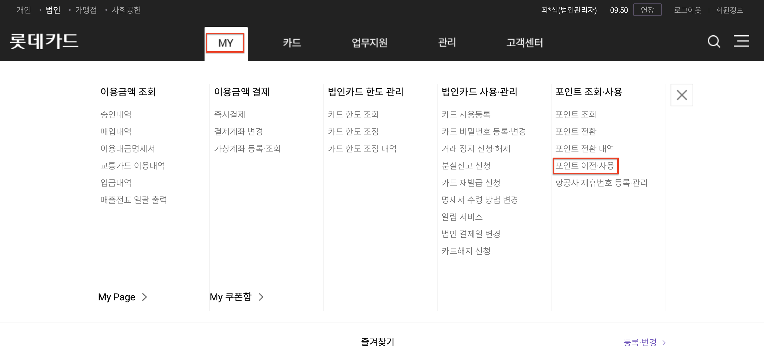롯데카드 법인 홈페이지 를 통해 조회 및 이용 가능