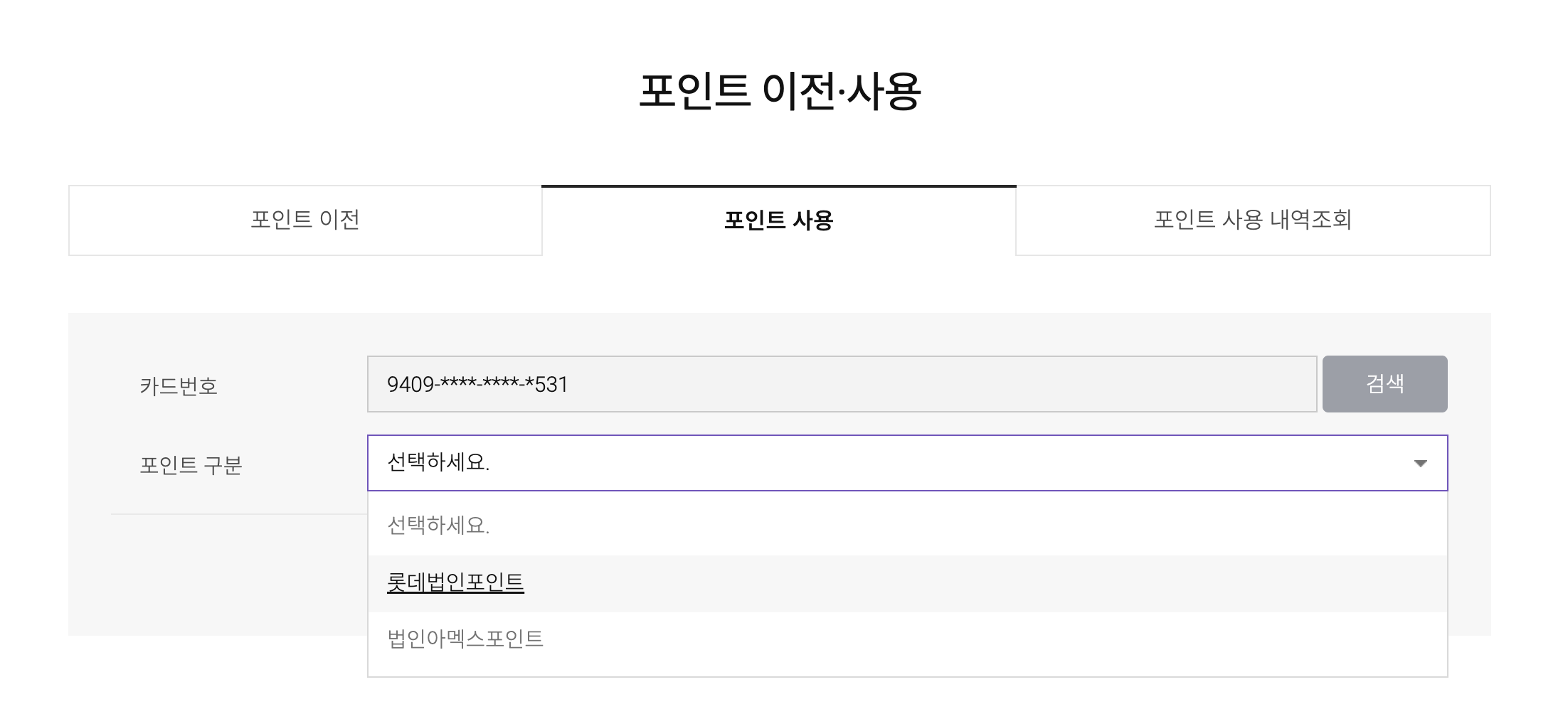 법인포인트를 통합 관리하는 법인사의 포인트 사용을 신청할 수 있습니다.