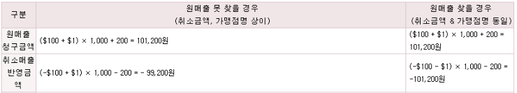 원화청구금액 → ($101 x 1,200) + 240원 = 121,440원