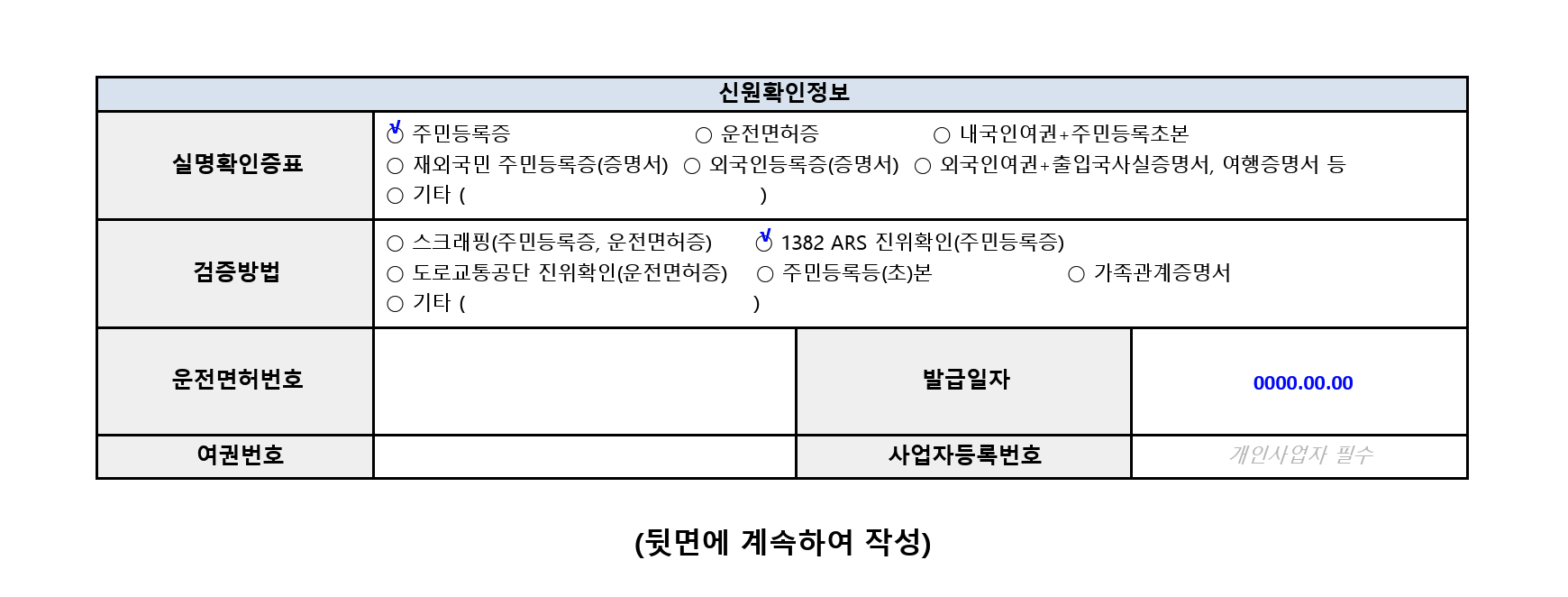 신원확인 등록에서 주민등록증은 통상적 예시로,