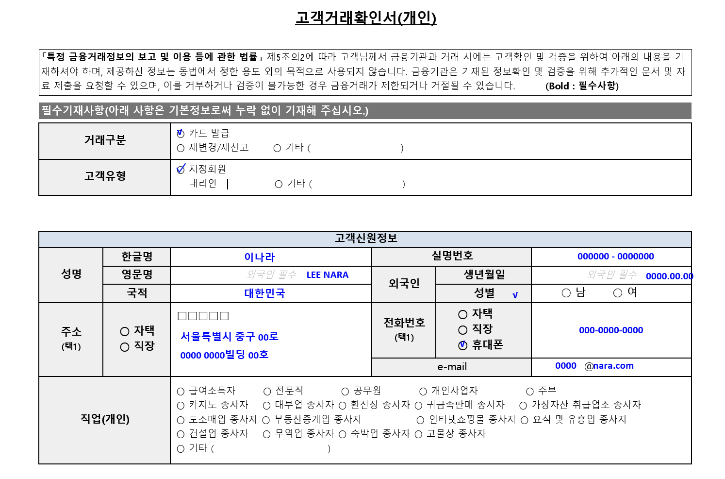 2026년 1월 22일부터「테러자금금지법」개정안이 시행됨에 따라, 법인카드 신규 입회 시 법인의 사실상 지배자 여부 확인을 위한 추가 서류 제출이 필수로 요청됩니다.