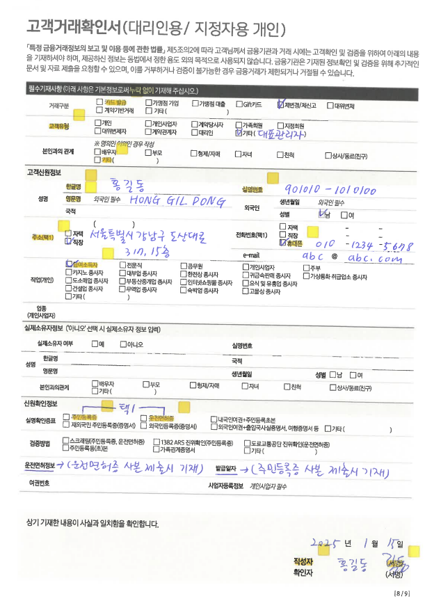 고객거래확인서(대리인용/지정자용개인)
