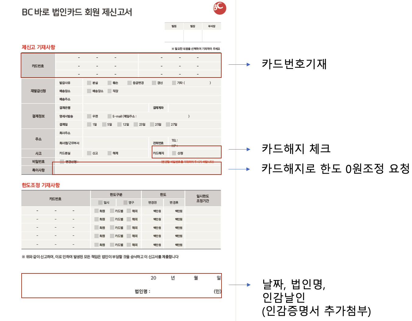 아래 BC카드 제신고서 PDF 양식을 다운로드 받으신 후, 아래 가이드에 따라 작성해주세요.