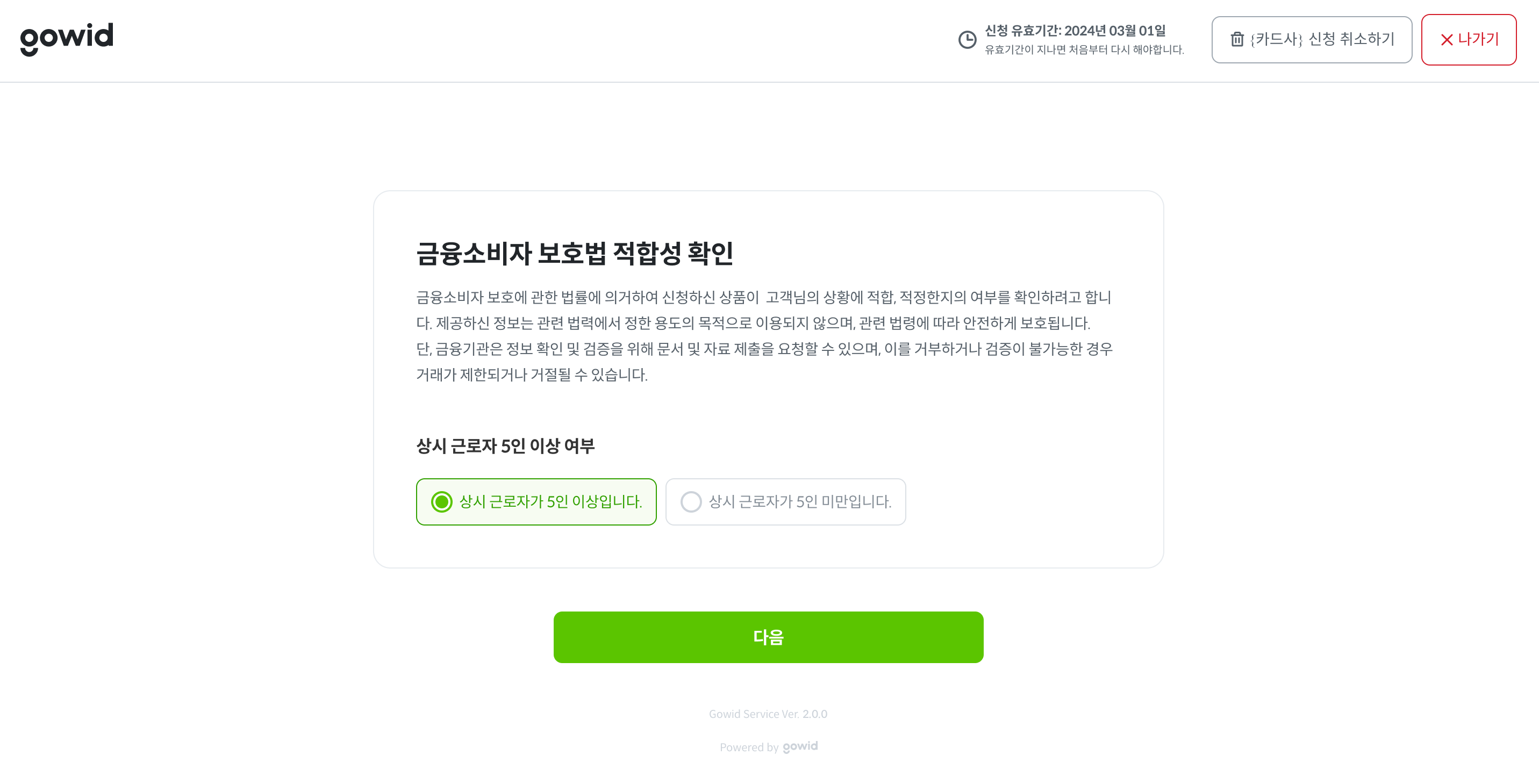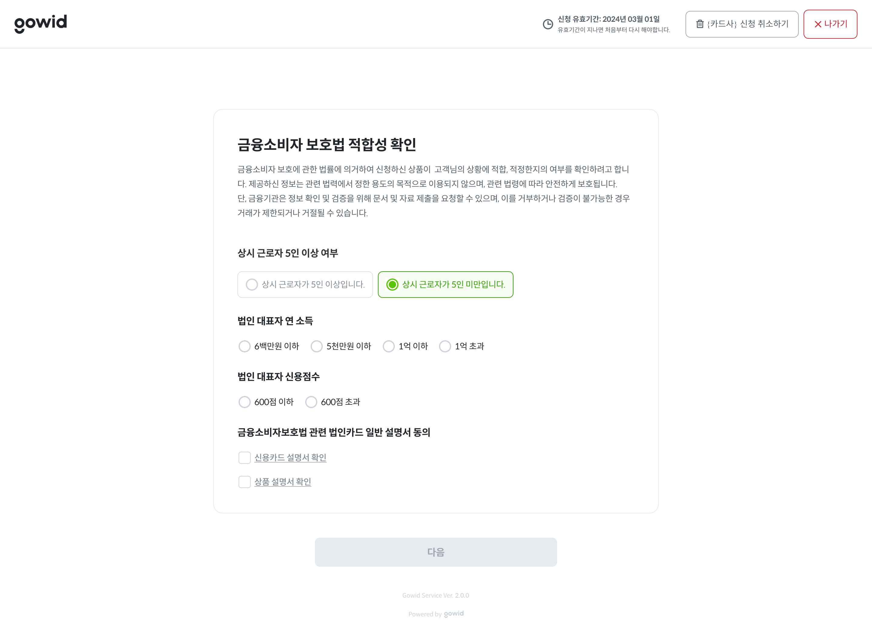 *적합성 확인 선택 항목에 따라 발급 진행이 어려울 수 있습니다.