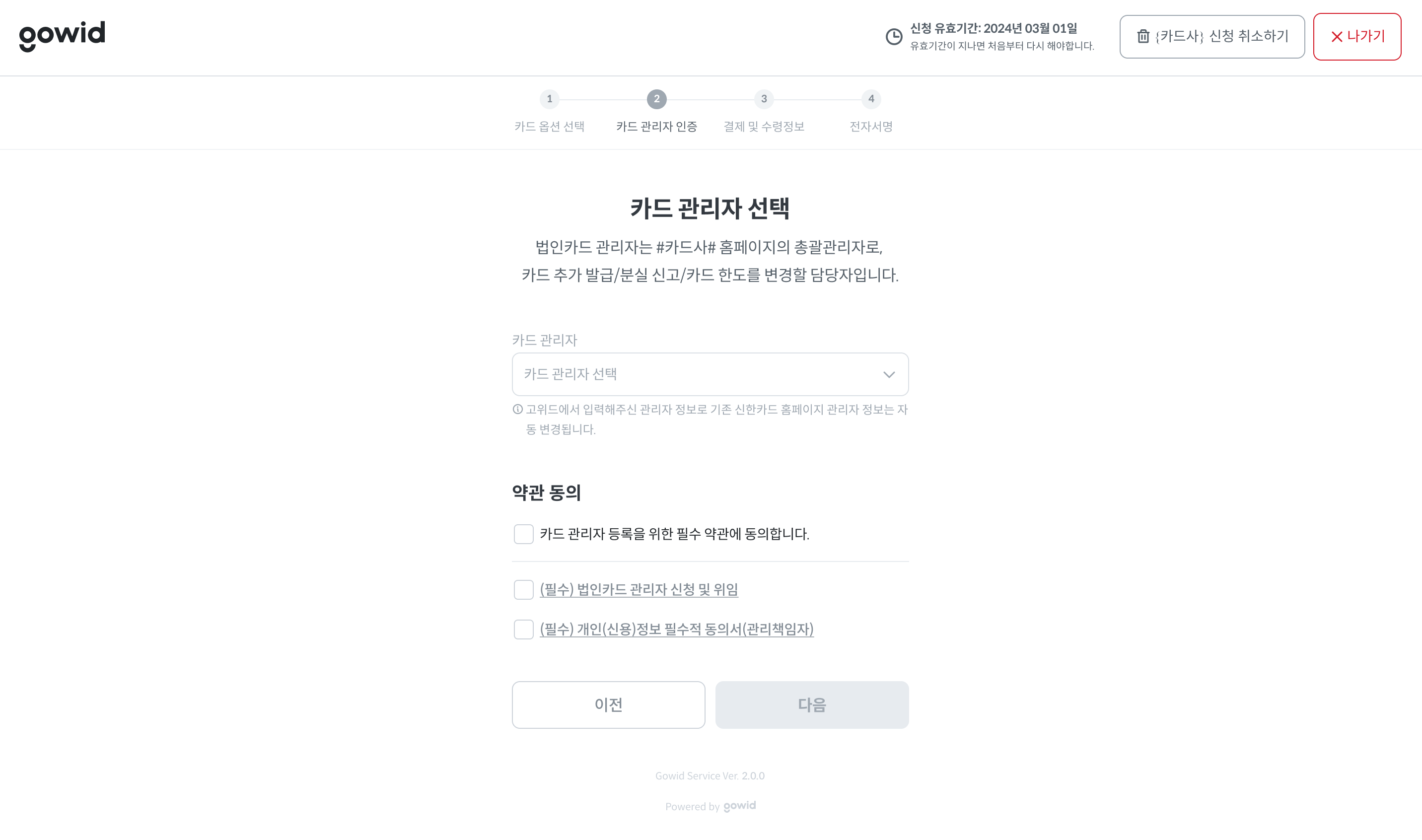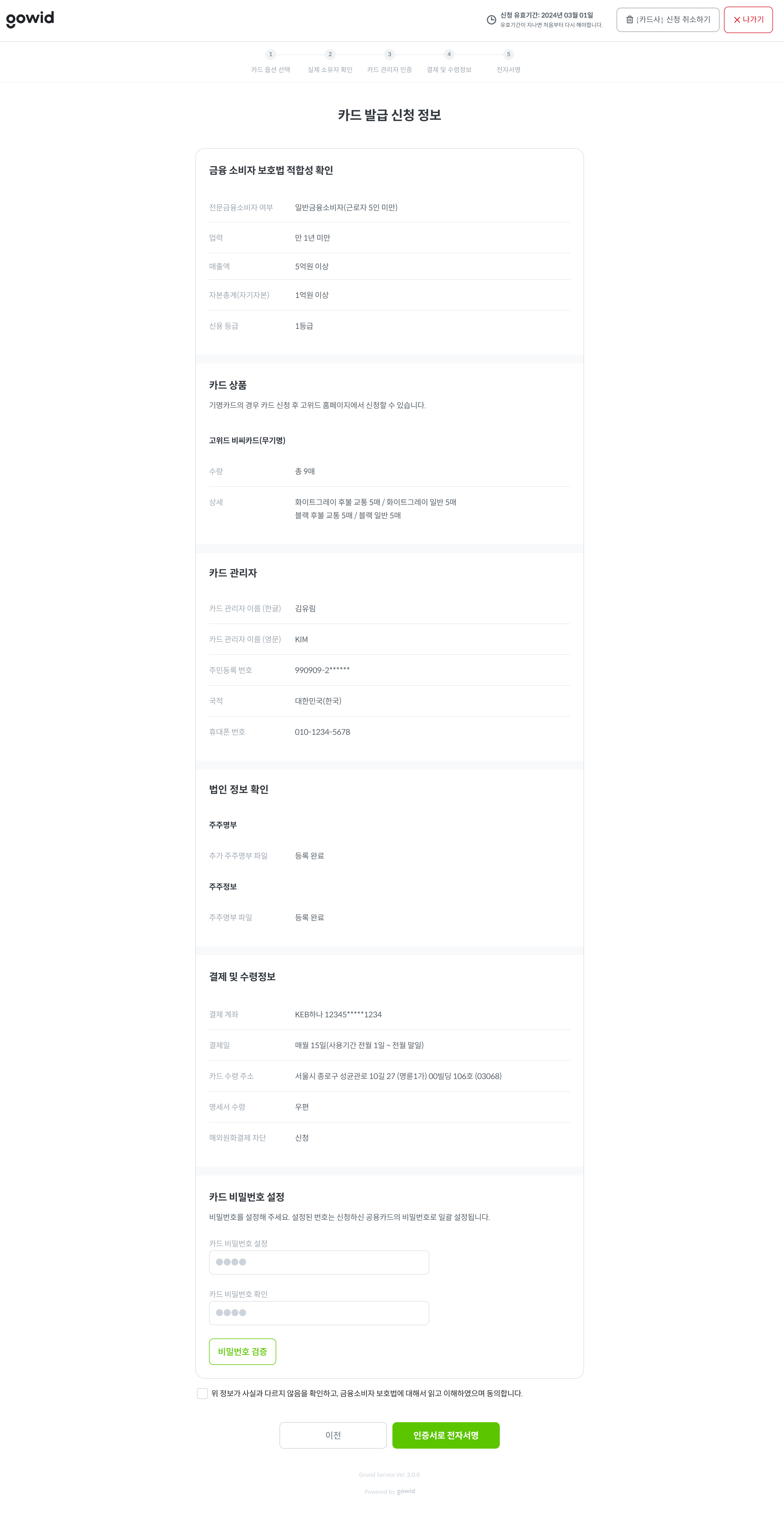 2) 카드 관리자의 신분증 인증 및 휴대폰 본인인증을 진행해 주시기 바랍니다.