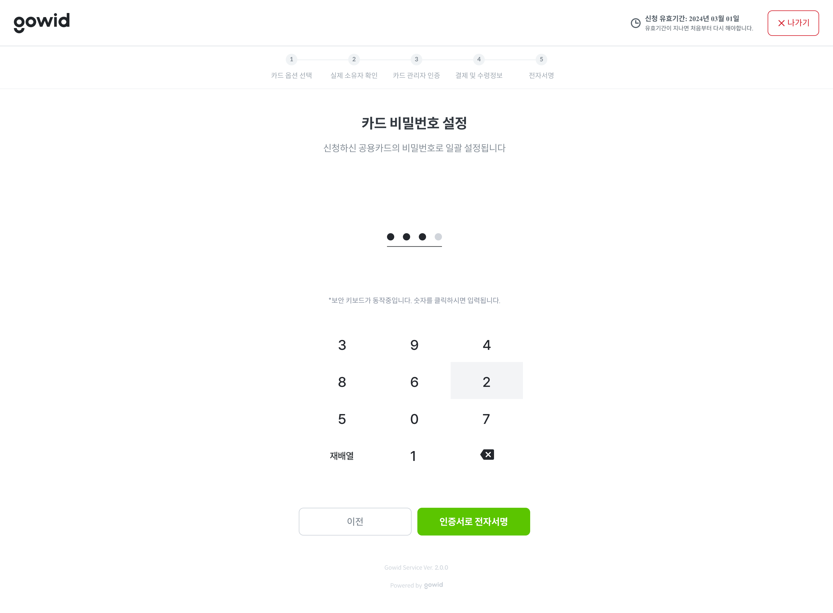 2) 카드 비밀번호를 설정해 주시기 바랍니다.