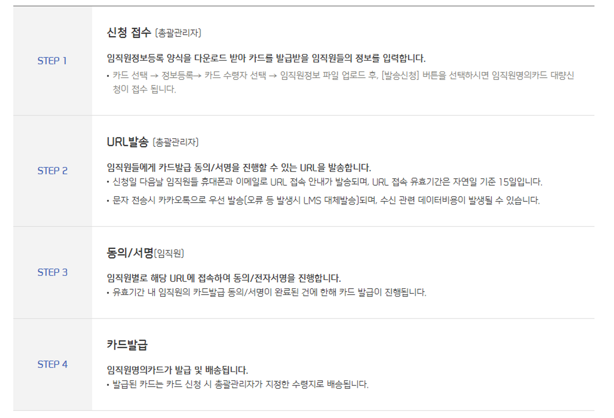 관리자가 승인까지 해주셔야 최종 카드 발급 신청이 완료됩니다. 아래 가이드를 참고하셔서 꼭 승인 진행해주세요!