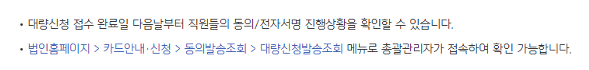• 카드안내/신청 → 임직원명의 대량신청